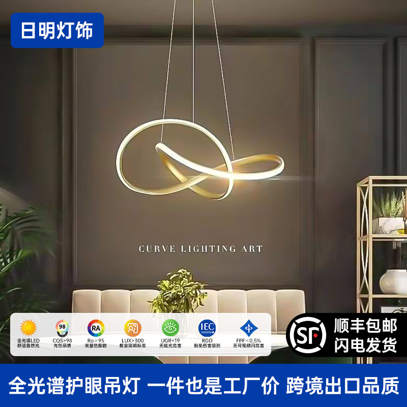 Lampu ring kreatif, lampu gantung ruang tamu bangunan dupleks, modern minimalis untuk apartemen, kamar tidur, ruang makan