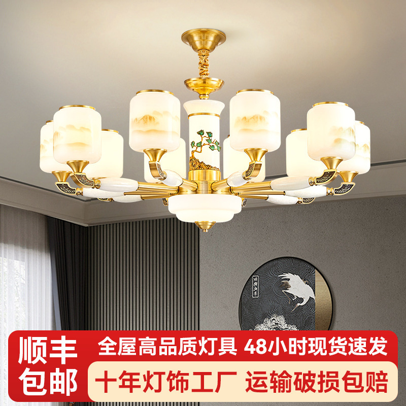 Lampu Gantung Tembaga Gaya Tiongkok Baru Lampu Ruang Tamu Suasana Villa Rumah Sendiri Lampu Gantung Ruang Makan Kamar Tidur Lampu Angin Tiongkok