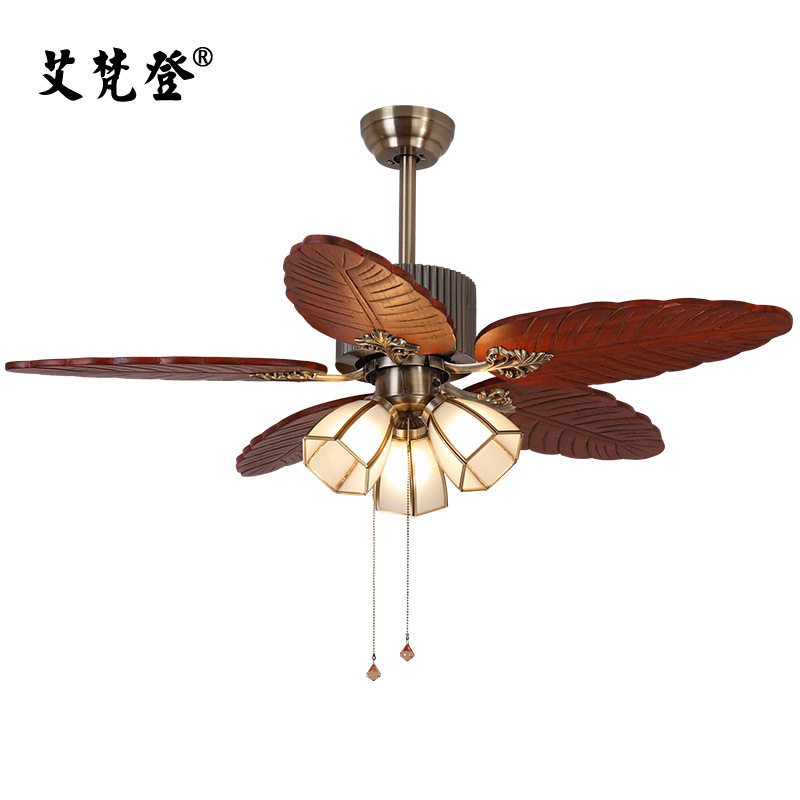Lampu kipas daun kayu Ukir, lampu gantung frekuensi variabel restoran Asia Tenggara, lampu langit-langit bisu antik ruang tamu Amerika