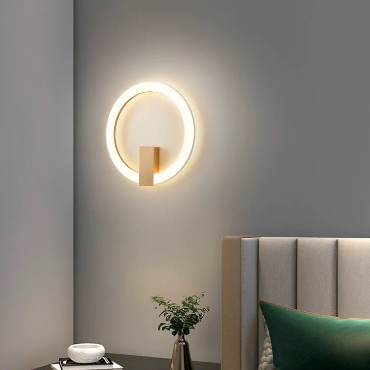 Lampu dinding samping tempat tidur, lampu dinding minimalis kreatif cincin kamar tidur ruang modern lorong mewah latar belakang TV
