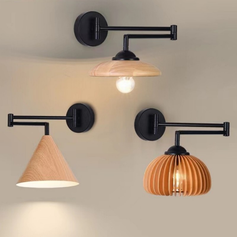 Lampu dinding samping tempat tidur gaya jepang, lampu dinding nordik sederhana lengan rocker dapat disesuaikan lampu samping tempat tidur hotel