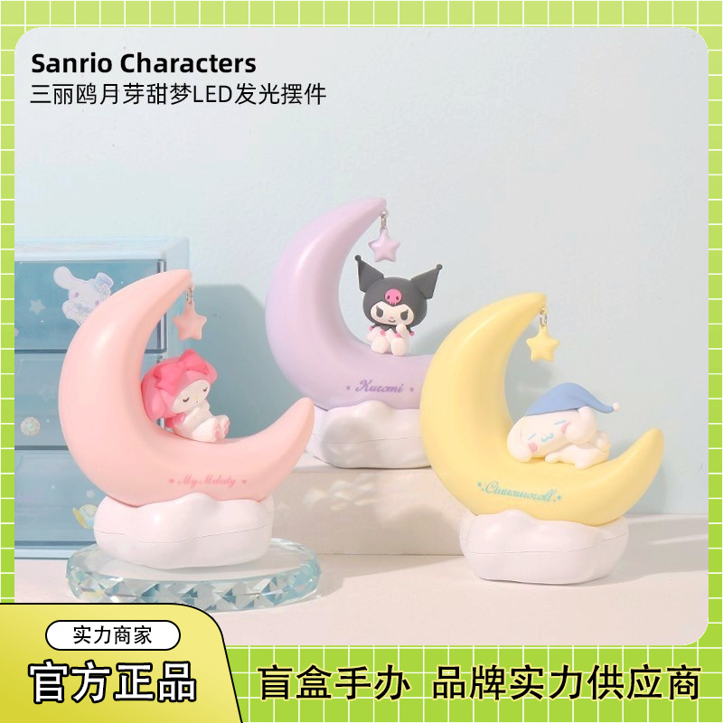 Sanrio Anjing Kayu Manis Kurome Kuncup Bulan Mimpi Manis LED Ornamen Bercahaya Hadiah Lampu Malam Lucu Seri Lucu Grosir
