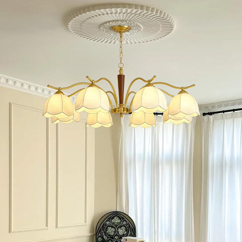 Lampu Gantung Ruang Tamu Cangkang Telur Gaya Kuno Krim Retro Gaya Amerika Rasa Premium 2025 Model Baru Peralatan Lampu Kamar Tidur Utama Gaya Perancis