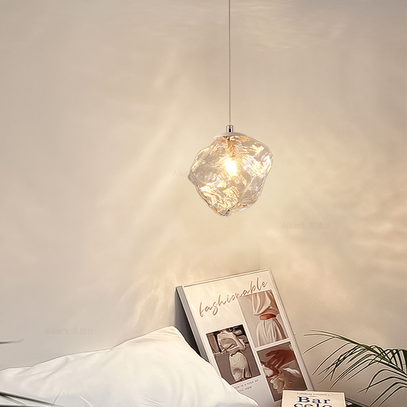 Ice Cube lampu gantung samping tempat tidur, desainer baru 2024, kaca kreatif garis panjang suasana Italia internet gaya selebriti lampu gantung kecil
