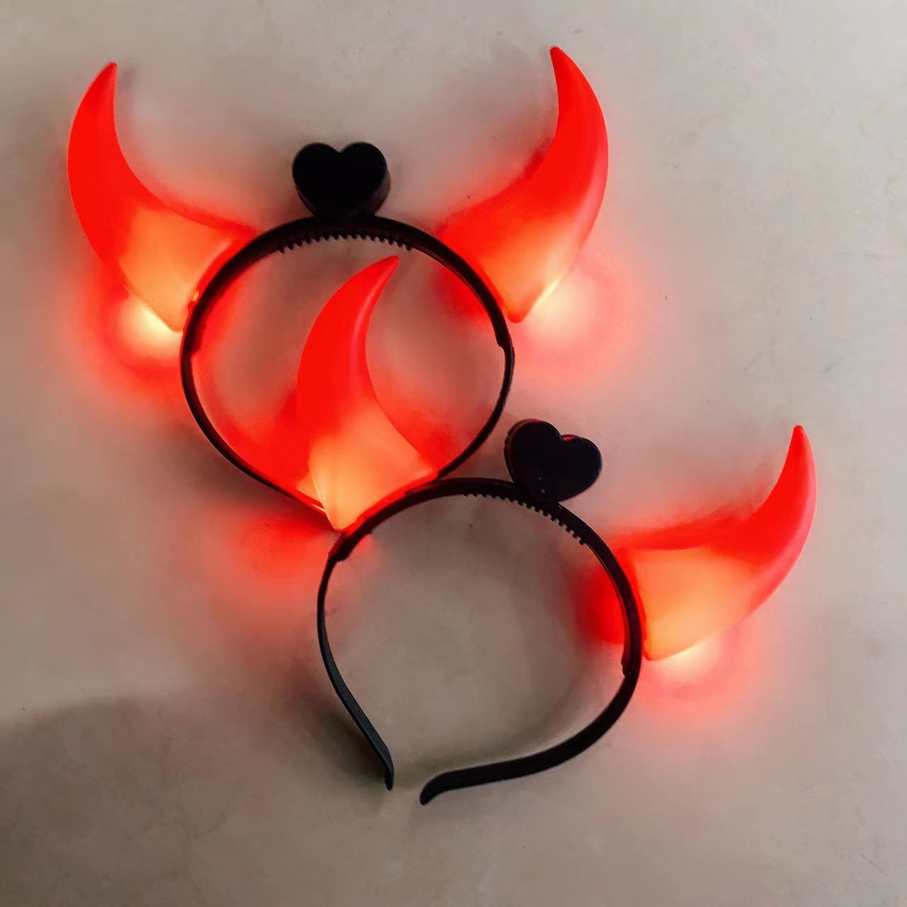 LED bercahaya tanduk setan kecil malaikat ikat kepala gesper jepit rambut hiasan kepala liburan mendorong hadiah tanduk ajaib