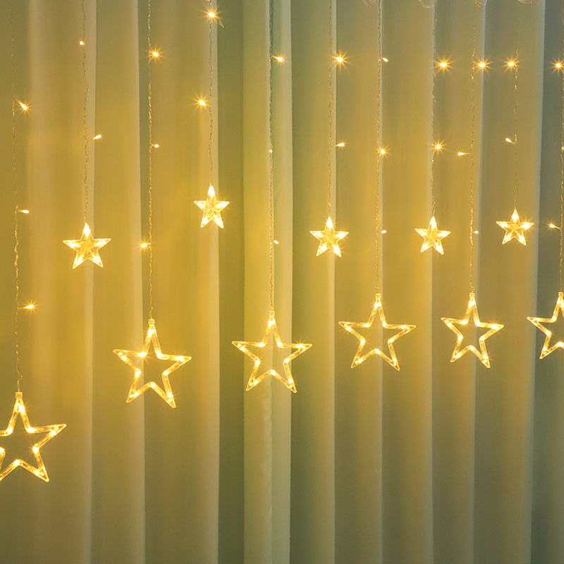 Lampu tirai bintang kawat tembaga LED, Festival Natal berbintang lampu gorden bintang lima titik ins lampu berwarna dekorasi bintang bulan selebriti Internet