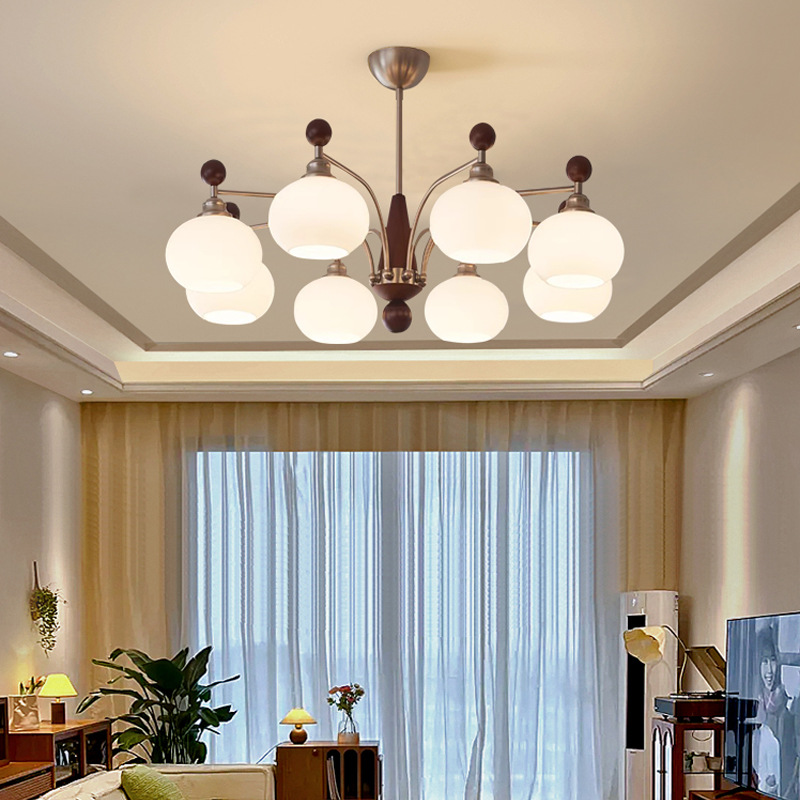 Lampu Gantung Ruang Tamu Kesemek Gaya Perancis Lampu Ruang Belajar Kaca Krim Gaya Kayu Solid Retro Lampu Kamar Tidur Gaya Amerika Rasa Superior