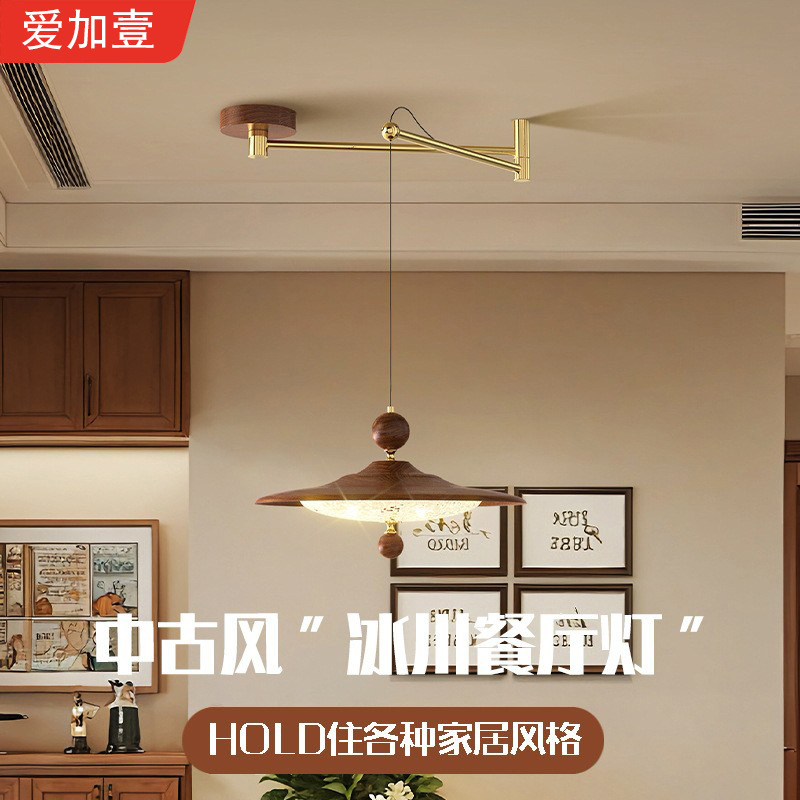 Lampu Gantung Restoran Rocker Gaya Pertengahan Dapat Digeser Meja Makan Putar Bar Meja Makan Kreatif Maillard Lampu Piring Terbang