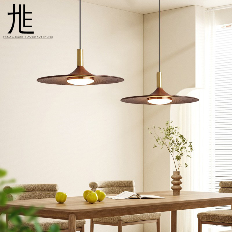2025 Lampu Gantung Restoran Gaya Pertengahan Baru Piring UFO Lampu Gantung Kamar Kopi dan Teh Lampu Samping Kamar Tidur Warna Kayu Kenari
