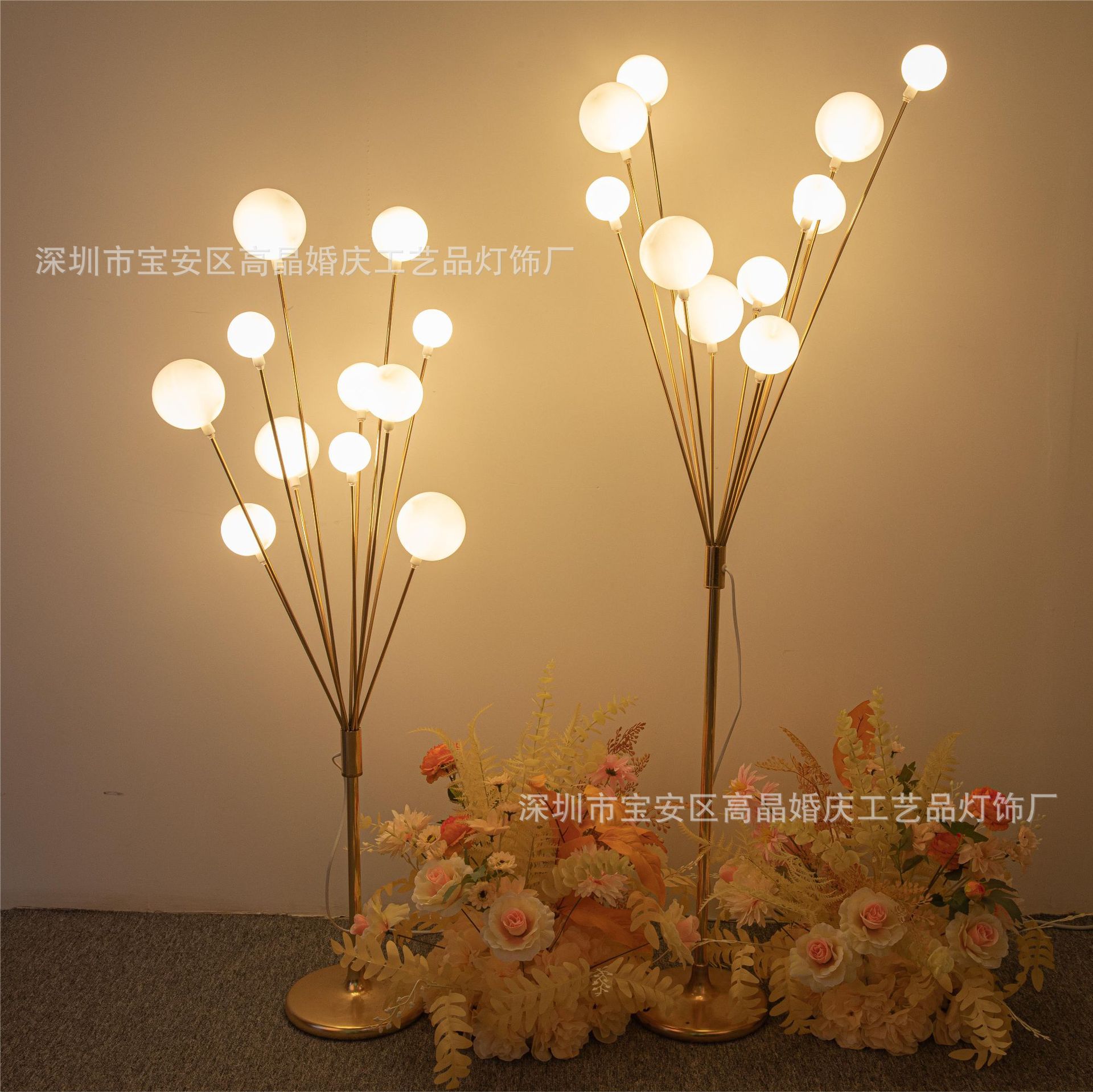Properti pernikahan jalan lampu utama dekorasi pernikahan besi elektroplating 1.5 m bercahaya pohon buah bahagia tata letak panggung T