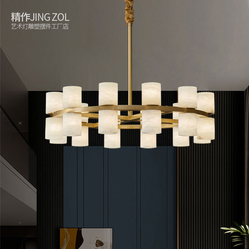 全铜新中式西班牙云石吊灯现代简约设计师样板间客厅餐吊卧室吊灯