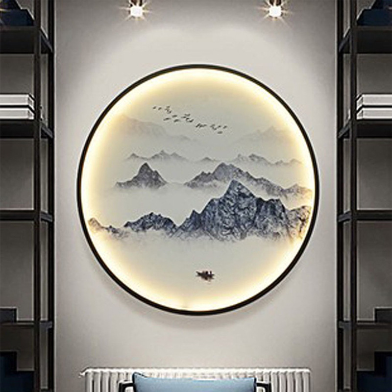 Lampu dinding gaya cina baru dekorasi dinding latar belakang lampu lukisan dinding gaya cina Zen bulat ruang tamu kamar tidur ruang teh lampu lorong