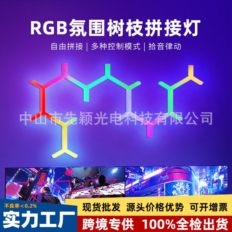 Lampu segitiga DIY, lampu splicing segitiga warna ajaib RGB dekorasi dalam ruangan e-sports TV latar belakang cabang lampu suasana