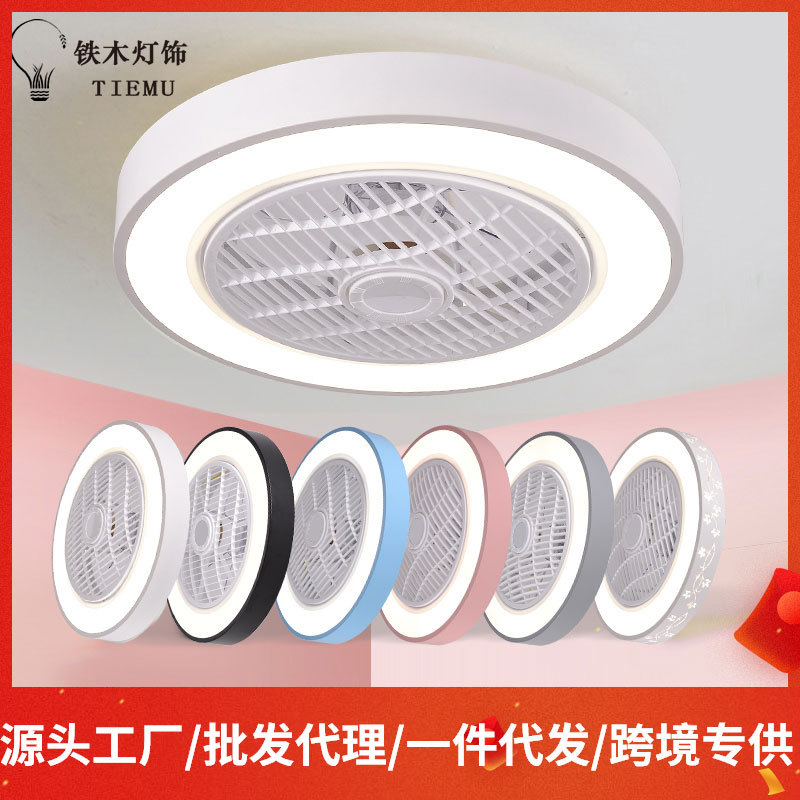 Lampu Kipas langit-langit Nordik, lampu kipas plafon tidak terlihat untuk ruang makan kamar tidur rumah tangga macaron ruang tamu dengan kipas listrik