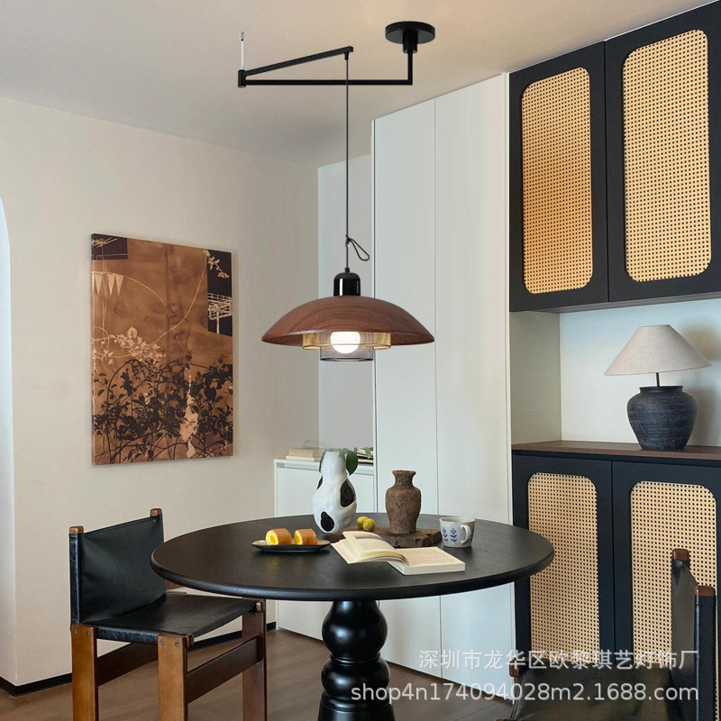 Lampu Gantung Restoran Abad Pertengahan Lampu Gantung Ruang Makan Meja Makan Dapat Geser Lengan Rocker Retro Pola Kayu Walnut