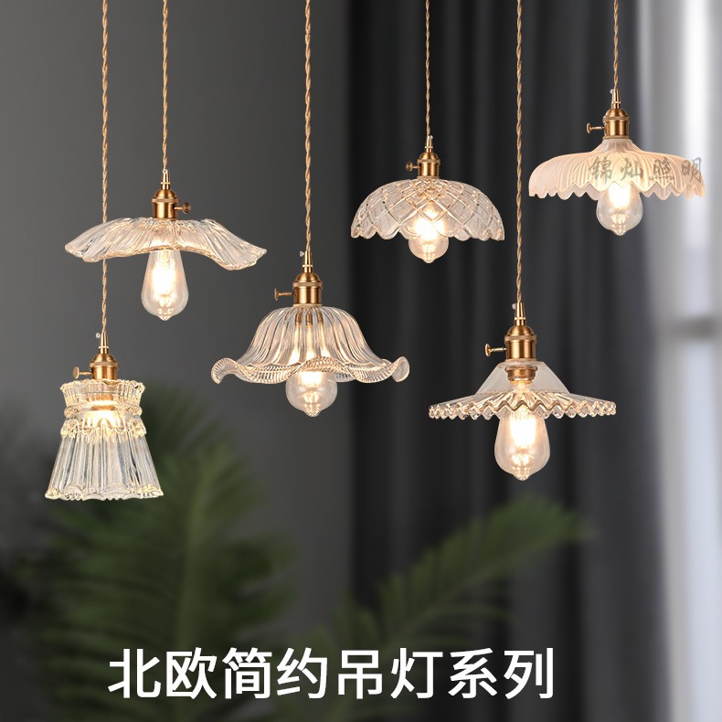 Lampu kaca Kuningan retro Tiongkok Republik Shanghai lama lampu gantung restoran kafe Bar B & B segar kecil