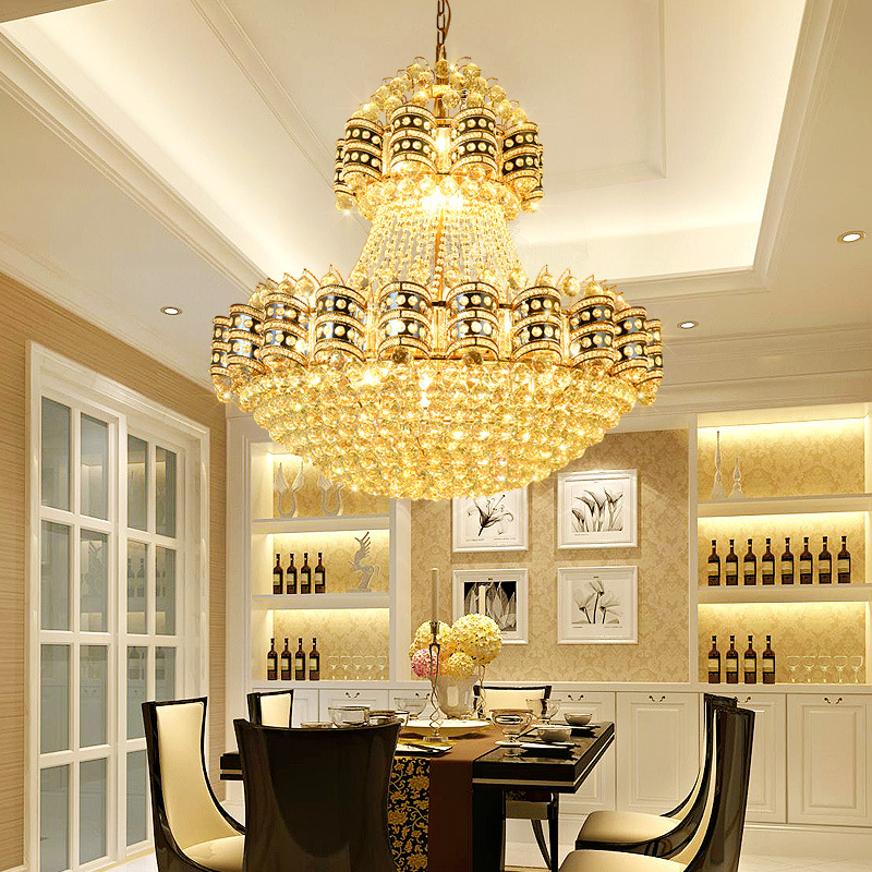 Lampu ruang tamu kristal bergaya Eropa model baru 2026, lampu ruang makan dan kamar tidur bergaya Prancis, lampu gantung besar mewah dan megah untuk vila dan rumah dupleks