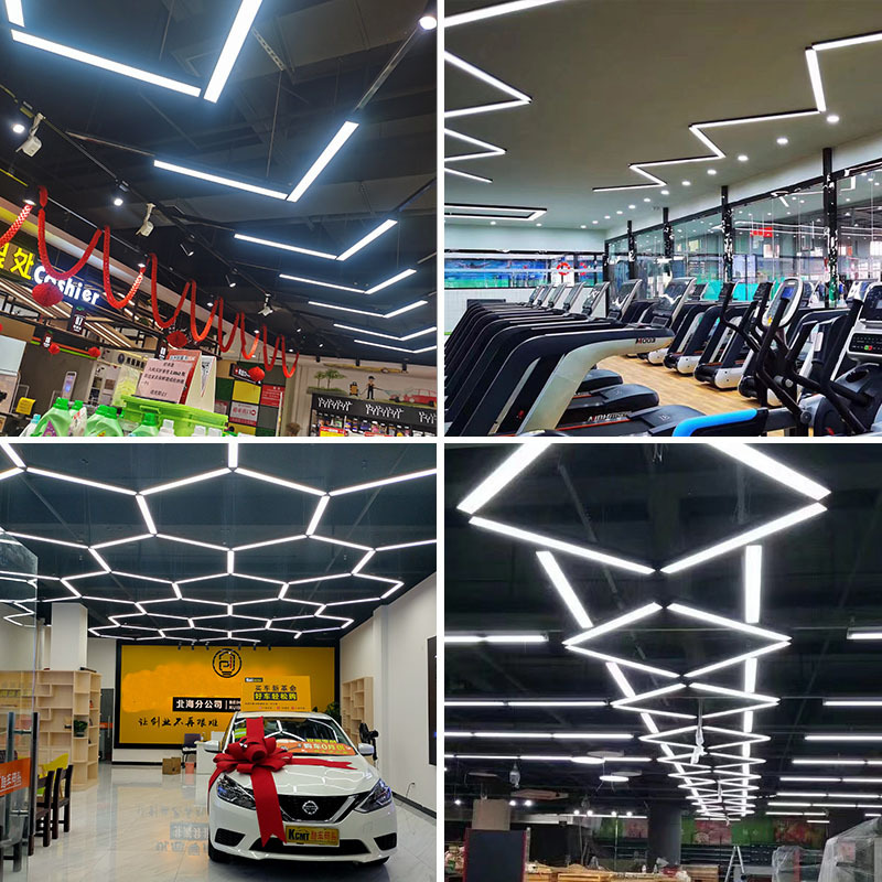 Lampu strip LED untuk kantor, ruang olahraga, aula pameran, toko, bentuk heksagonal sarang lebah dengan sambungan panah