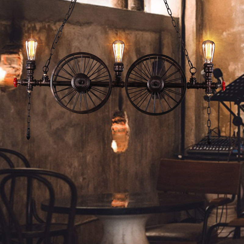 Lampu gantung restoran Retro, lampu besi roda kreatif pribadi Bar toko barbekyu, loft gaya industri