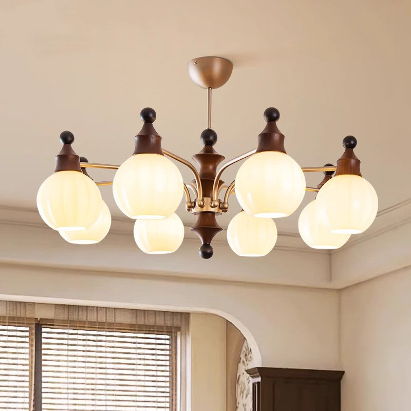 Lampu Gantung Ruang Tamu Kacang Ajaib Gaya Pertengahan Gaya Prancis Lampu Desainer Kamar Tidur Utama Restoran Rasa Superior Kayu Solid Retro Gaya Amerika