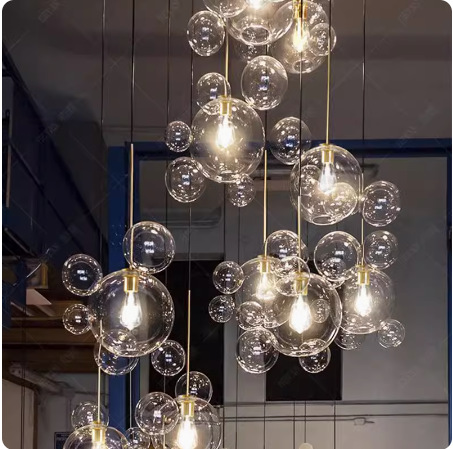 Grosir lampu gantung gelembung kaca, bulat modern minimalis pribadi kreatif toko pakaian restoran bola Mickey lampu gantung