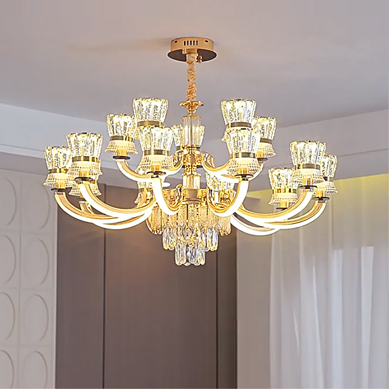 Lampu kristal ruang keluarga, lampu modern mewah lampu utama suasana Eropa lampu depan bercahaya lengan 2023