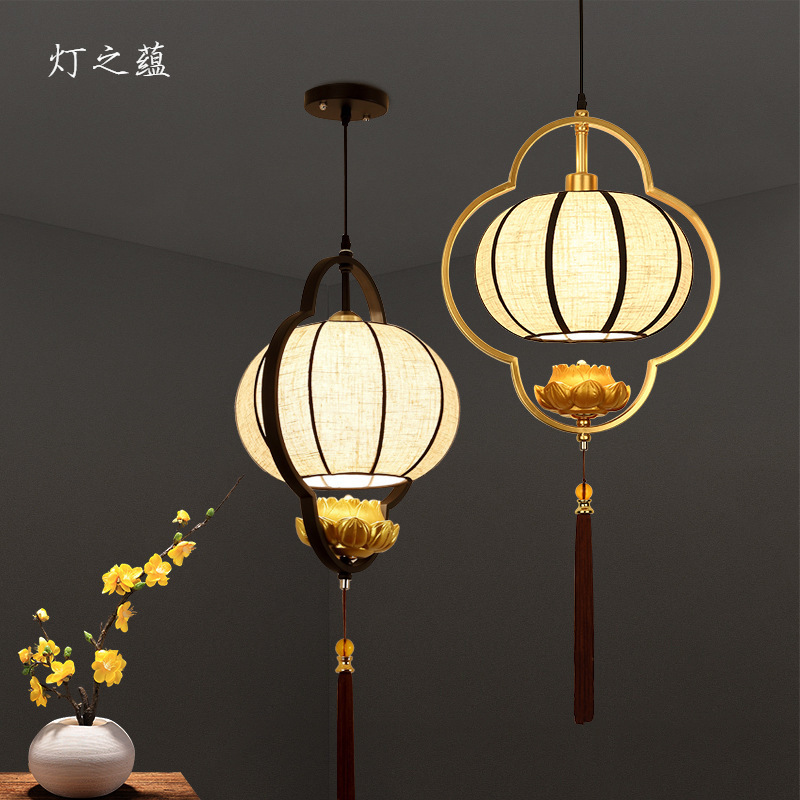 Tempat lilin Zen Cina baru ruang teh lorong Lotus koridor lorong balkon hotel teknik rumah teh lampu gantung kecil