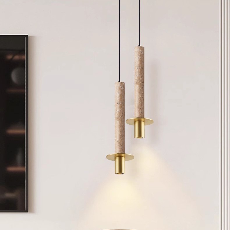 Lampu gantung panjang Retro, tempat tidur batu kuning Gua Nordik modern bar restoran hitam gua batu