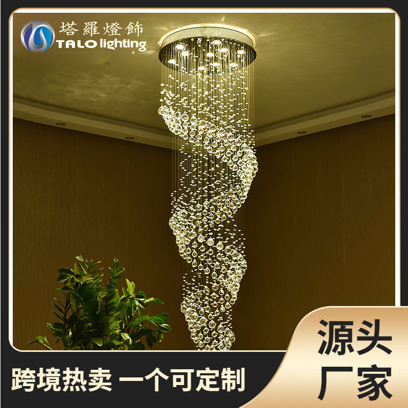 Lampu gantung kristal led lintas batas Amazon 2024 lampu gantung Hotel Vila tangga dupleks mewah spiral 5