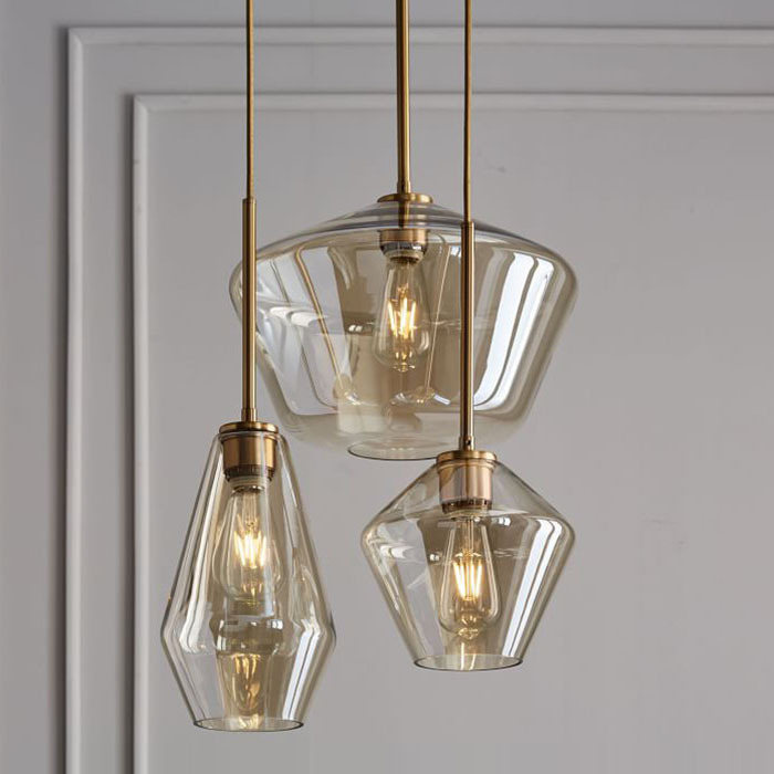Tempat lilin kaca amber Nordic sederhana modern pakaian toko ruang makan ruang makan tempat lilin kaca kombinasi tiga kepala
