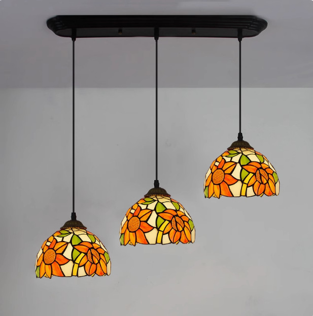 Lampu Gantung Tiga Kepala Seni Retro Lampu Hias Bar Restoran Tiffany Lampu Gantung Pintu Masuk Gaya Eropa Kaca Berwarna