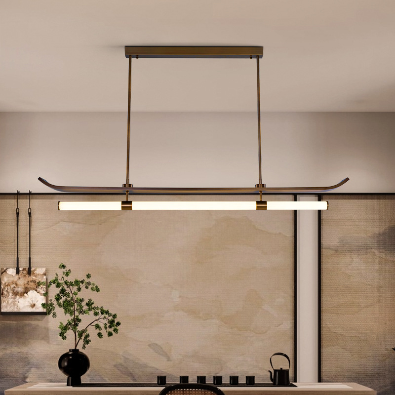 Lampu gantung LED gaya Tiongkok, lampu ruang teh lanskap belajar bar sederhana Zen ruang tamu gaya Tiongkok persegi panjang