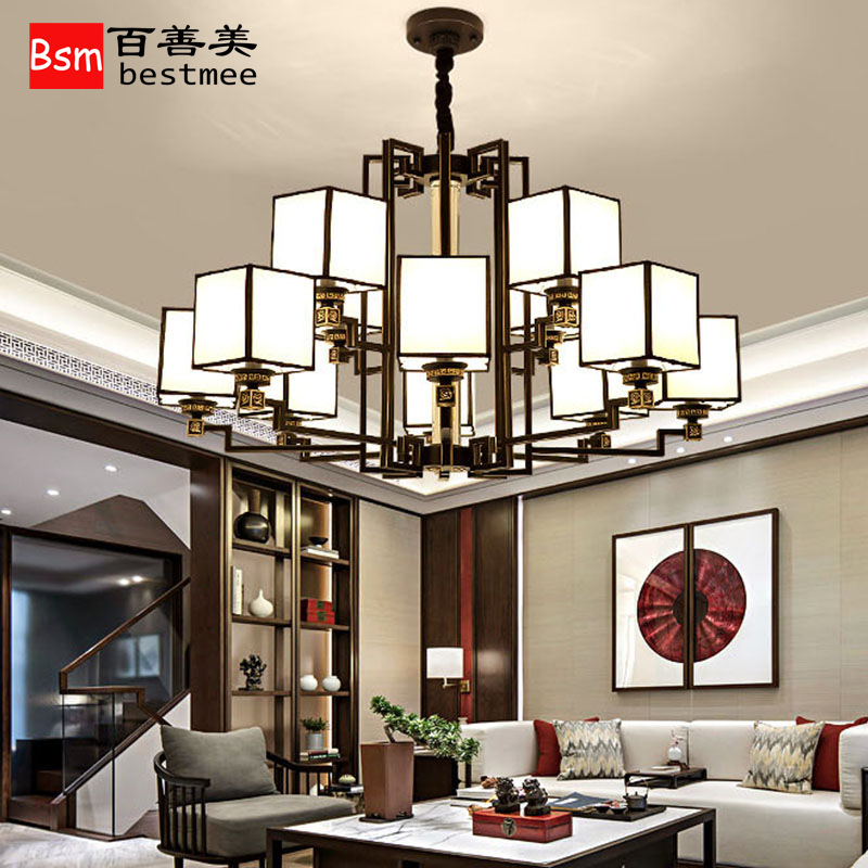 Lampu gantung gaya Tiongkok, lampu bangunan dupleks, vila belajar kamar tidur, lampu ruang makan gaya China atmosfer sederhana modern
