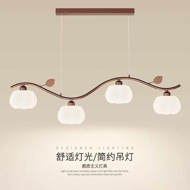 Lampu Gantung Restoran Gaya Krim Lampu Meja Makan Terang Sederhana Modern Lampu Meja Makan Panjang Labu Kreatif Pelindung Mata Spektral Penuh