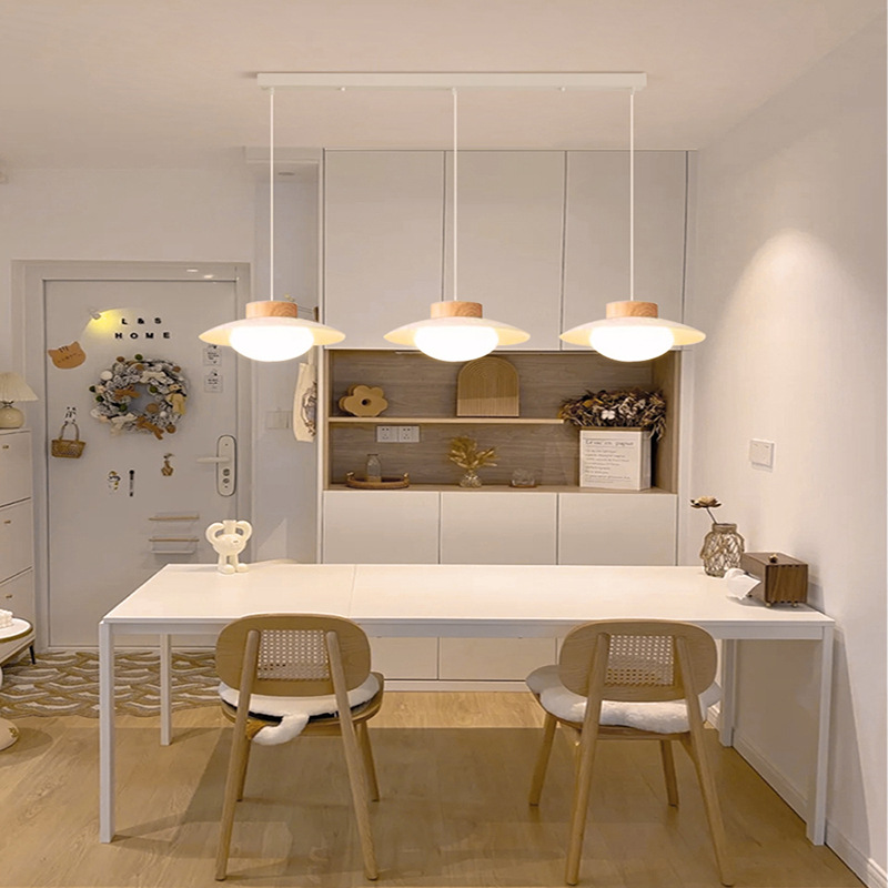 Lampu gantung ruang makan gaya krim log, tiga kepala kuno bar ruang makan modern baru Zhongshan sederhana 2024