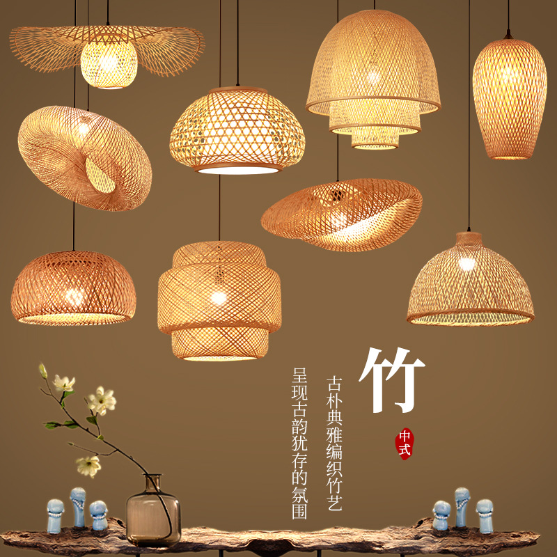 Zen China baru lampu gantung bambu gaya Jepang tempat tidur & sarapan rumah teh pot panas Restoran balkon buatan tangan bambu rotan kap lampu