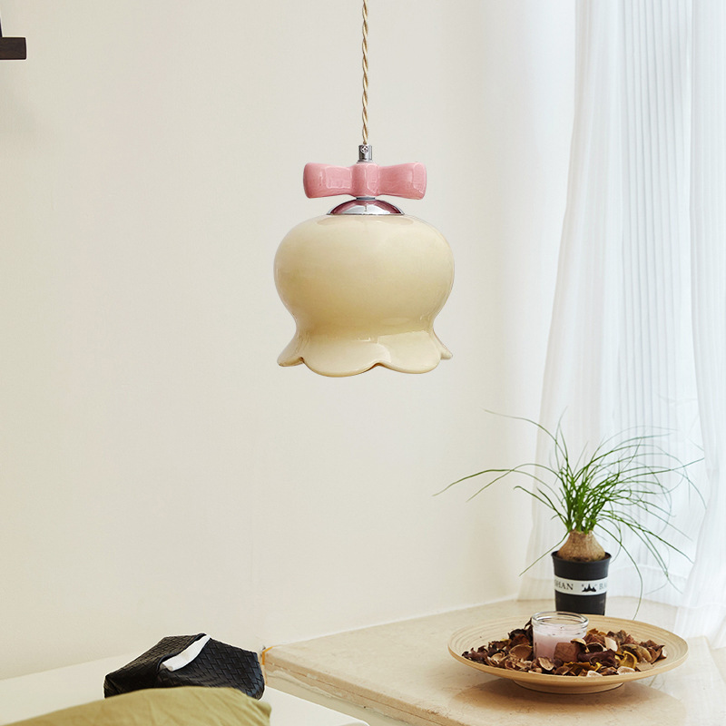 Lampu gantung gaya krim kamar tidur tempat tidur angkat lampu bar restoran modern sederhana lampu bunga Denmark lampu gantung garis panjang