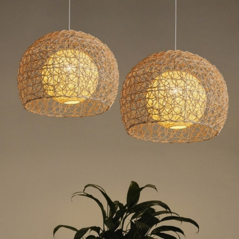 Art Chandelier Sederhana Kepribadian Tenun Rotan Seni Pedesaan Kamar Tidur Ruang Tamu Balkon Ruang Makan Bulat Alat Pencahayaan Bola rami Pabrik