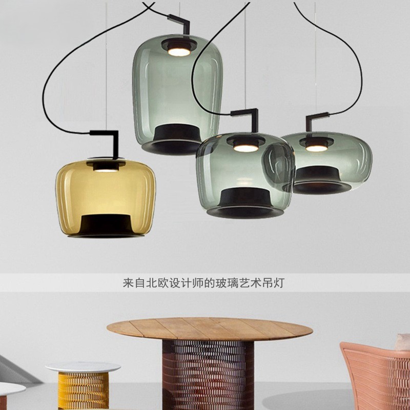 Lampu kaca kepala tunggal warna angin industri Nordic, lampu kaca kepala tunggal sederhana kreatif bar ruang tamu ruang makan kamar tidur lampu samping tempat tidur