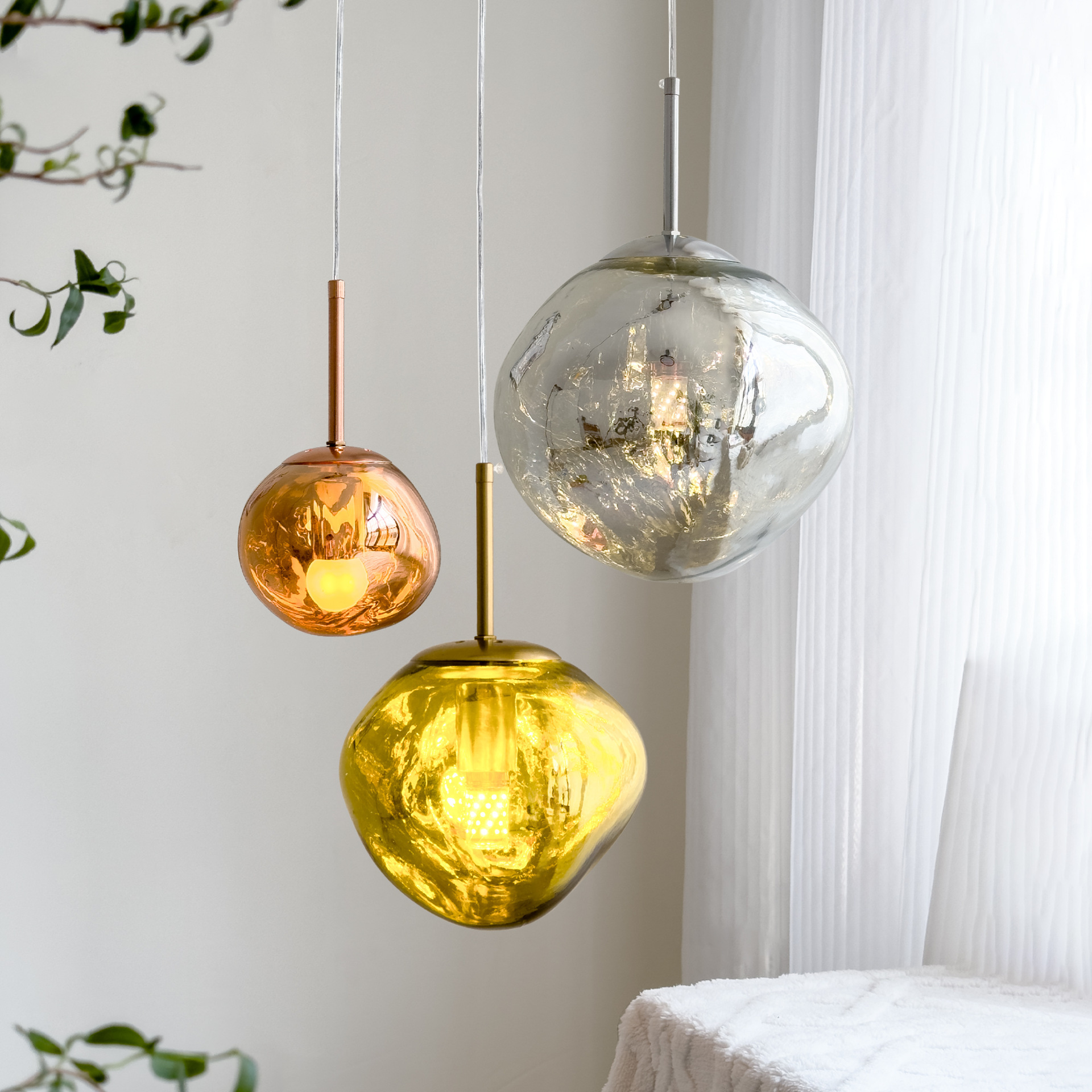 ✅Lampu Chandelier Kaca Kelopak Nordik Lampu Meja Restoran Kreatif Lampu Meja Bar Lampu Chandelier Tembaga