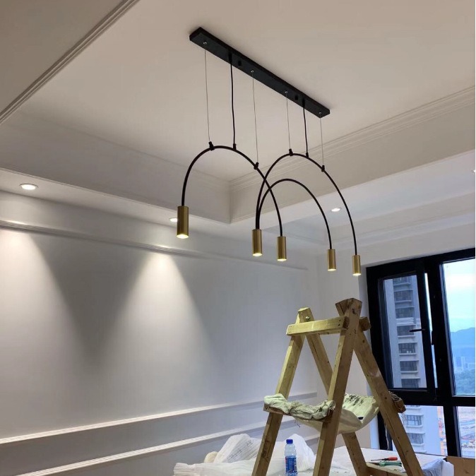 Lampu gantung meja makan, Nordic sederhana seni garis besi desainer kreatif lengkungan kopi restoran lampu bar