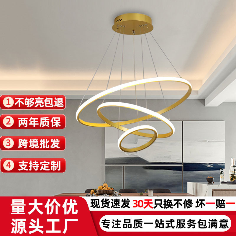 led restoran lampu gantung skandinavia modern minimalis lampu gantung kamar tidur ruang tamu lampu tiga cincin Zhongshan pencahayaan pabrik penjualan langsung