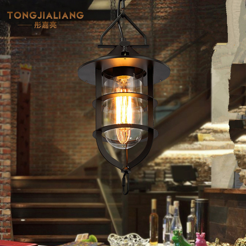 Lampu gantung gaya industri Amerika retro besi kreatif restoran kepala tunggal lampu gantung kandang burung lampu gantung Tempat makan