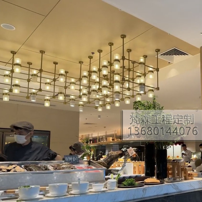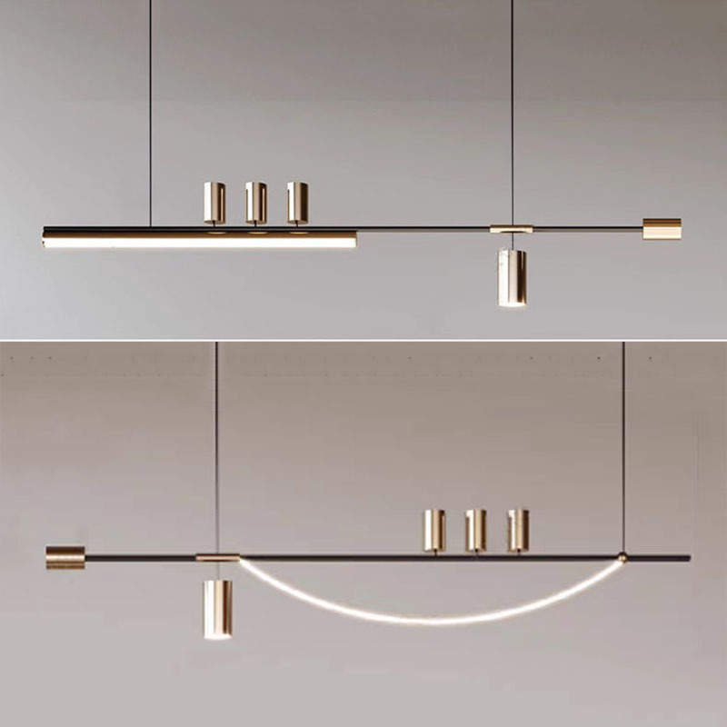 Kustom Berbagai Ukuran Panjang Batang Hitam Emas Bar Lampu Chandelier Panjang Banyak Warna Tembaga Lampu Strip Panjang Ruang Makan Hotel Ruang Tamu