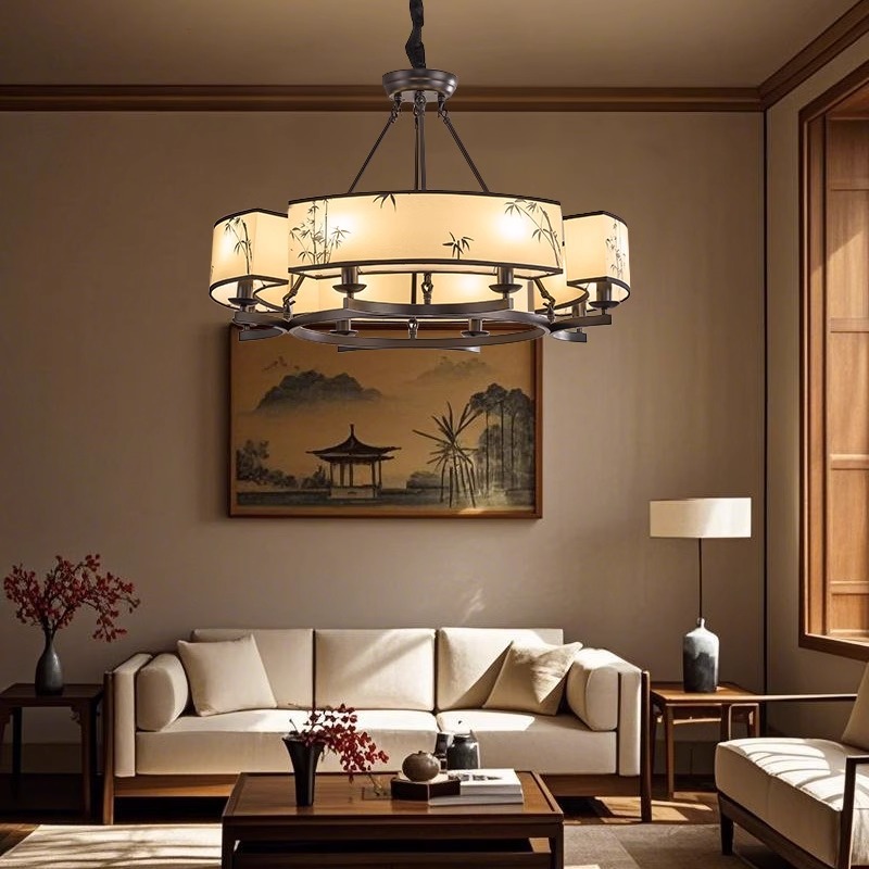 Oriental Song Dynasty Estetika Lukisan Daun Bambu Ruang Tamu Lampu Gantung Desainer Lobi Lampu Utama Zen Ruang Makan Kotak Kelas Atas