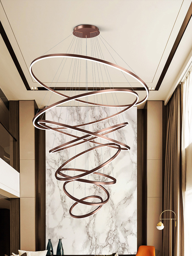 Lampu Gantung Panjang Tangga Lampu Ruang Tamu Gaya Eropa Utara Elegan Minimalis Modern Lampu Ruang Makan Lampu Gantung Berputar untuk Villa Destaly Bahan Aluminium