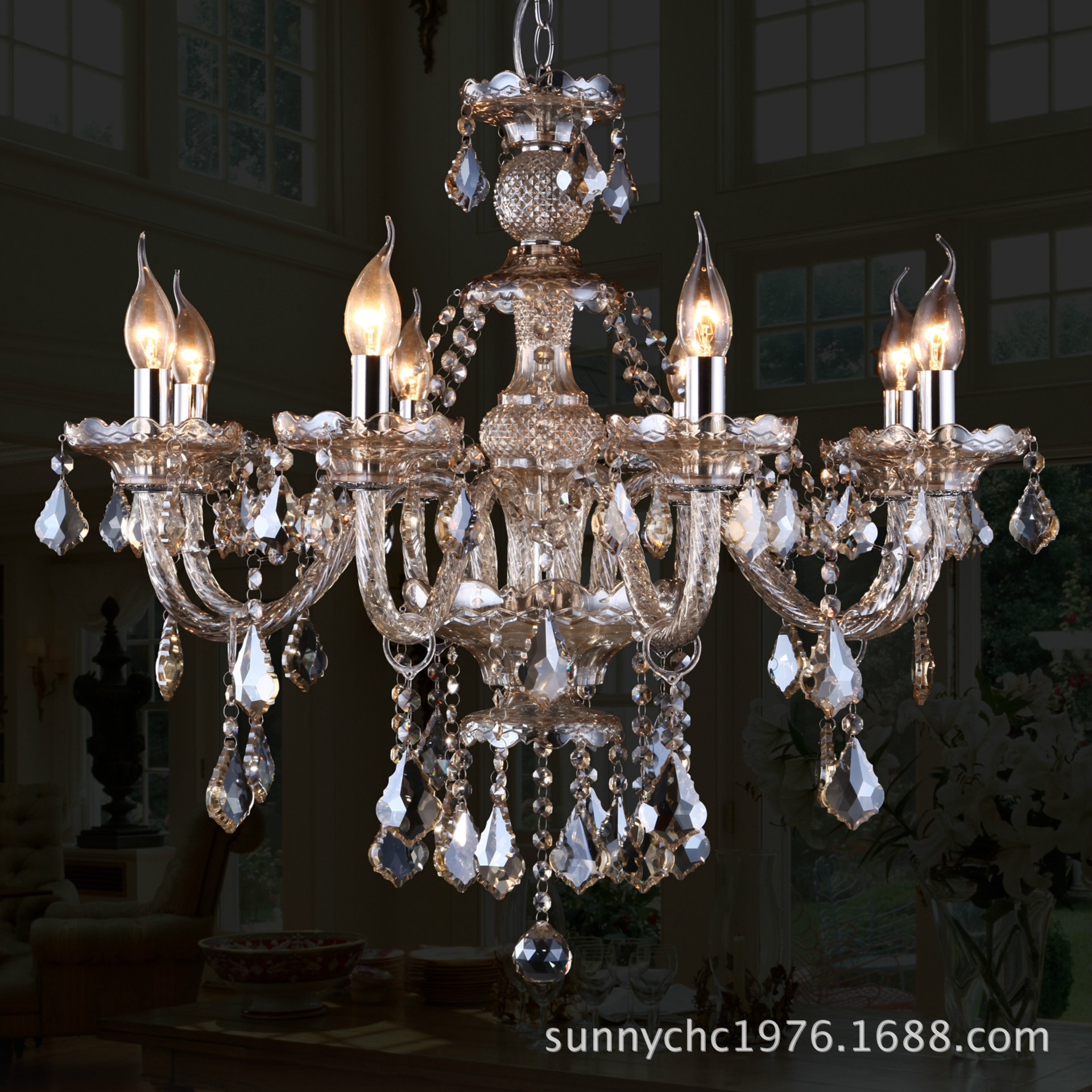 Lampu kristal cognac 8 kepala, lampu lilin tabung berulir cognac ruang tamu ruang makan kamar tidur tempat santai dan hiburan
