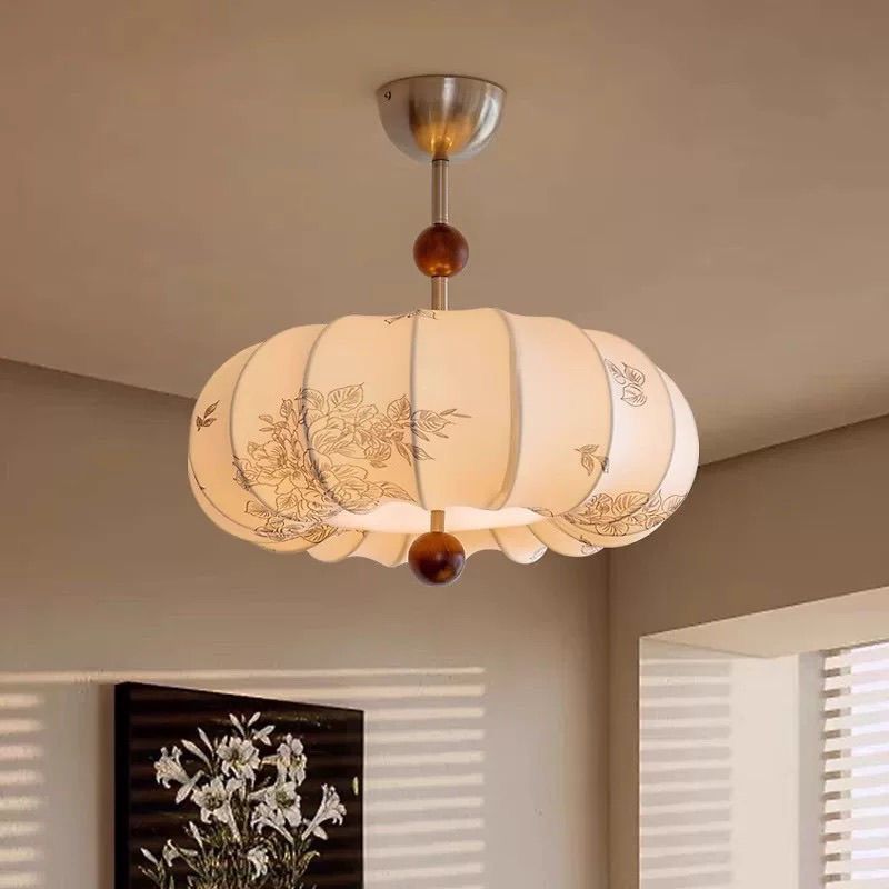 Lampu Gantung Kamar Tidur Gaya Rebus Prancis Pola Kain Lampu Gantung Restoran Abad Pertengahan Lampu Utama Kamar Angin Keheningan Kayu Solid Nanyang