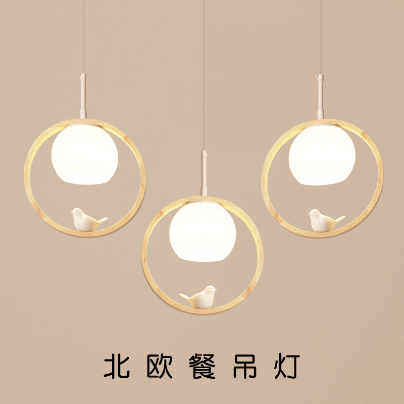 Lampu Gantung Restoran Tiga Kepala Eropa Utara Sederhana Modern Kreatif Pola Kayu Zhongshan Tempat Tidur Meja Kopi Perlengkapan Bar