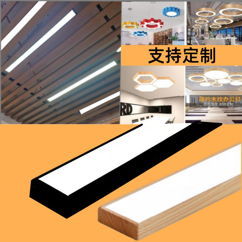 Lampu Kantor lampu strip led motif kayu lampu kantor strip persegi log aluminium persegi persegi lampu gantung komersial khusus